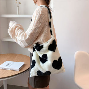 Love Heart Shoulder Bags Winter Plush Shopping Bags For Women
