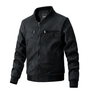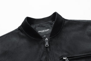 Suede Stand Collar Men's Jacket Double Zipper Pocket Clothing Mens